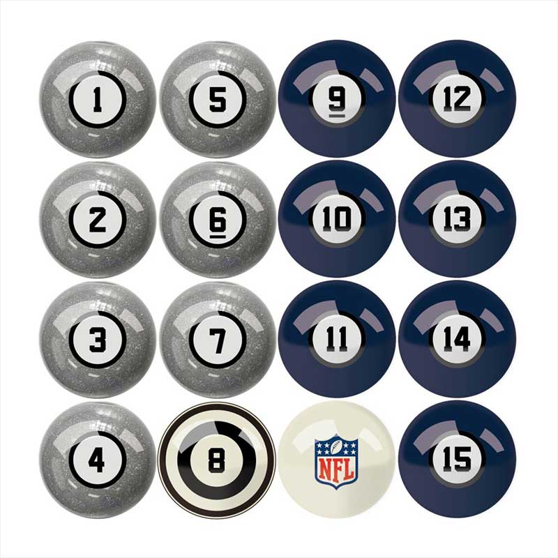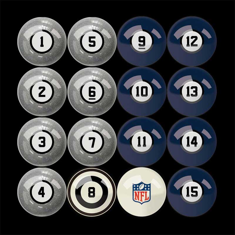 Take your favorite team to the pool table and enjoy a quick game of 8 ball or 9 ball. These balls have large team logos and numbers and really pop! Balls are regulation size and weight and made of a polyester resin that resists chipping and cracking. Time to get you a set!