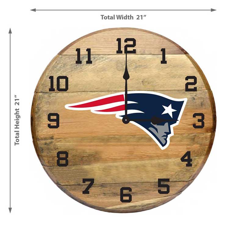 Keep time with champions with the New England Patriots Oak Barrel Clock. This clock is meticulously crafted from oak and shaped like a barrel, featuring the iconic Patriots logo. Its classic design fits well in any setting, adding a touch of elegance and team pride. Reliable and stylish, it’s a must-have for Patriots fans and collectors alike. A perfect blend of form and function, this clock will keep you on time for every game day.