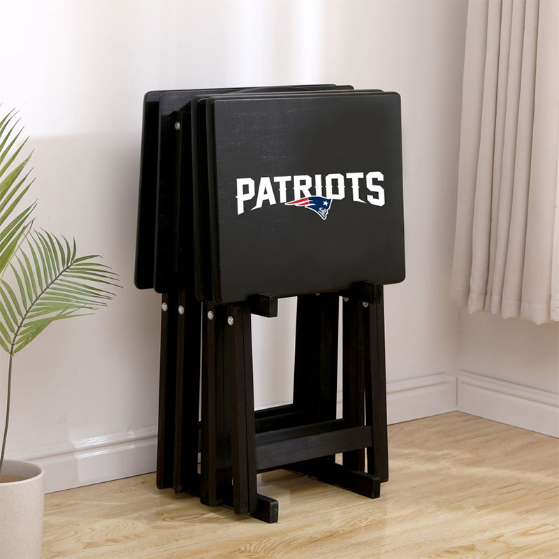 Show your team spirit with the NFL Official Licensed TV Snack Tray Set. The heavy duty trays and storage rack are made from select hardwoods that are finished with a durable, easy to clean surface so you don’t have to worry about stains. Team logos are silkscreened on the top of each tray. When you are done snacking, put the trays back into the storage rack to keep things neat and clean. Each tray measures 26″L x 19″W x 14.5″H. Set of 4 snack trays and storage rack are made to order. Made in China.