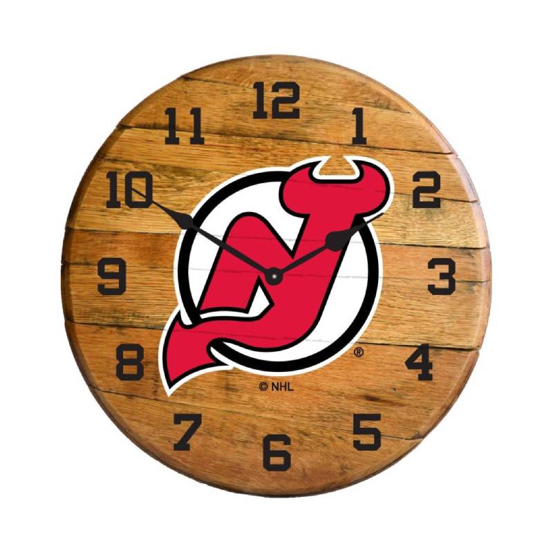 Imperial New Jersey Devils Oak Barrel Clock