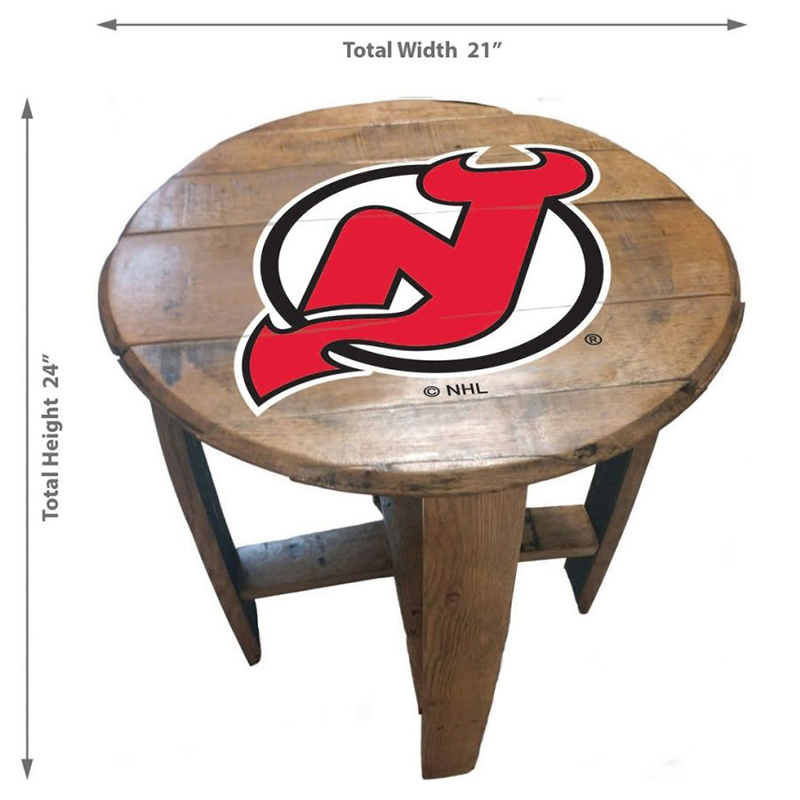 - Spruce up your living room or fan cave with this officially licensed New Jersey Devils custom made Oak Barrel Table from Imperial!