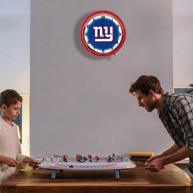 - Neon Lighting: Features vibrant blue and red neon lights surrounding the Giants logo for eye-catching illumination.