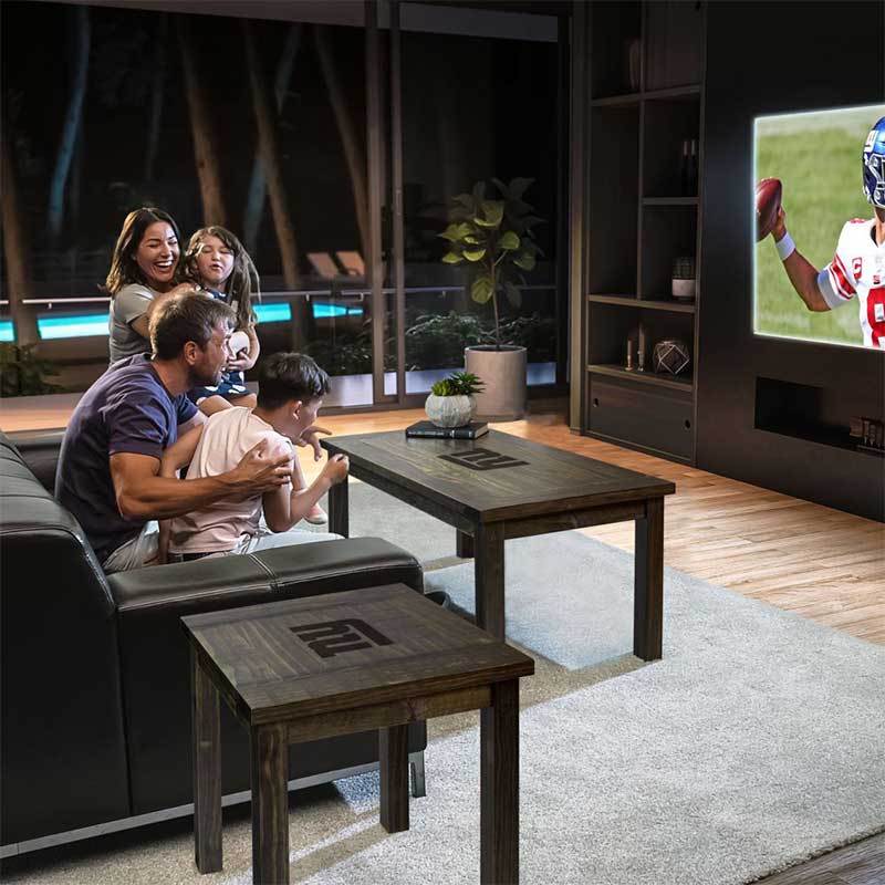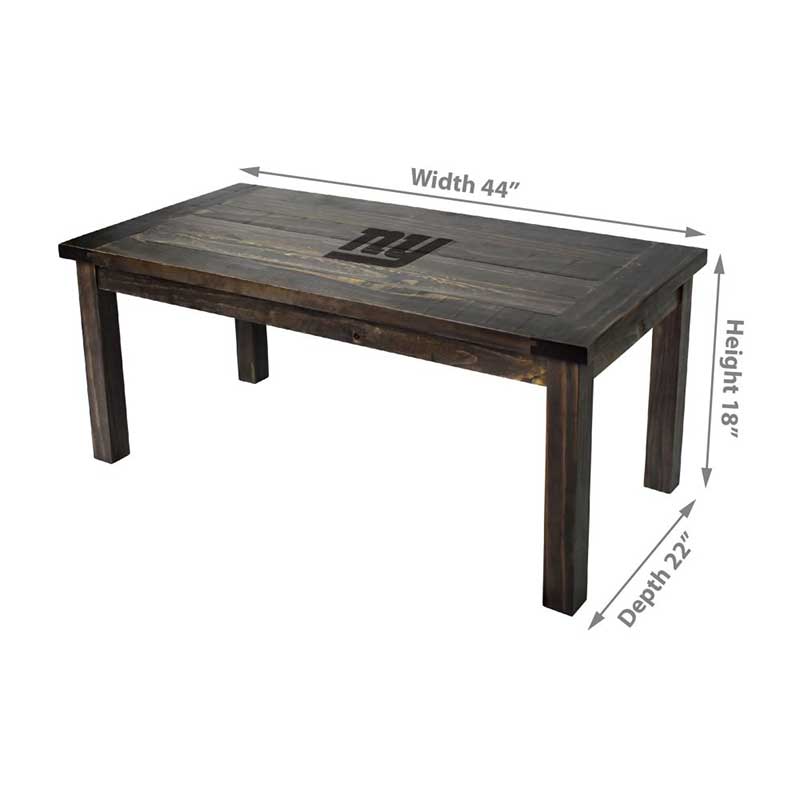 This New York Giants Reclaimed Coffee Table features your favorite team’s logo to bring team spirit to any living space. Made of solid pine wood. The table looks great holding drinks and snacks in your fan cave or in your living room. Pair this with a team side table to complete your room! This product is officially licensed by the NFL.