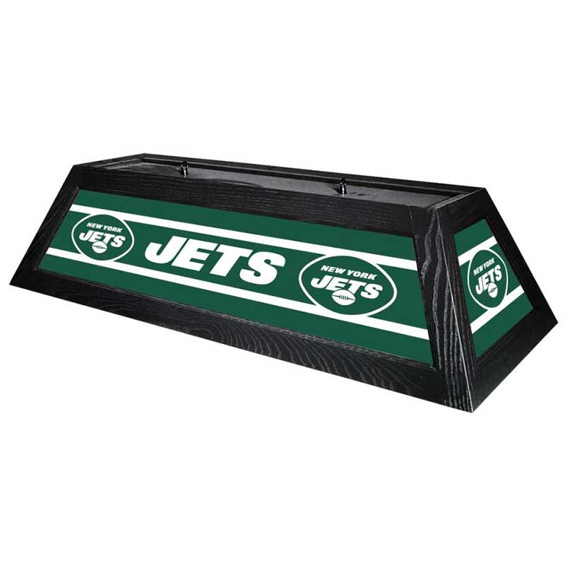 Your New York Jets 42″ Billiard Lamp is built to last with a bright backlit design digitally printed on shatter resistant acrylic panels. The solid black hardwood frame, will both compliment your billiard table as well as illuminate it with up to 400w of light for the playing surface. Everything is included to hardwire this beauty above your favorite pool table.