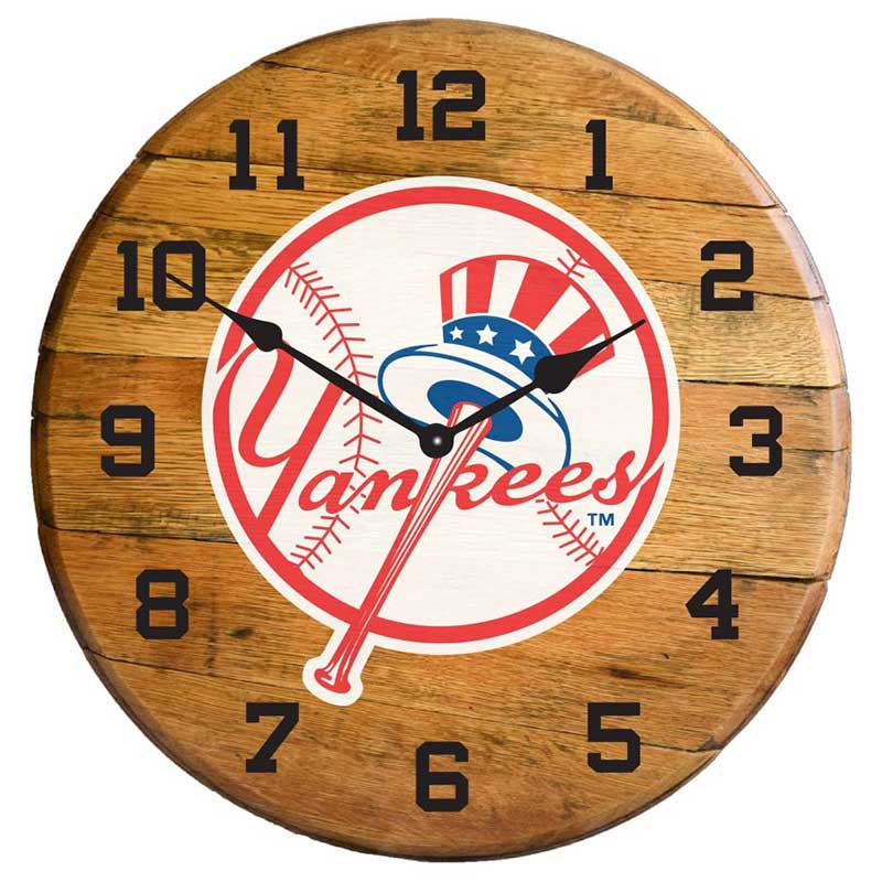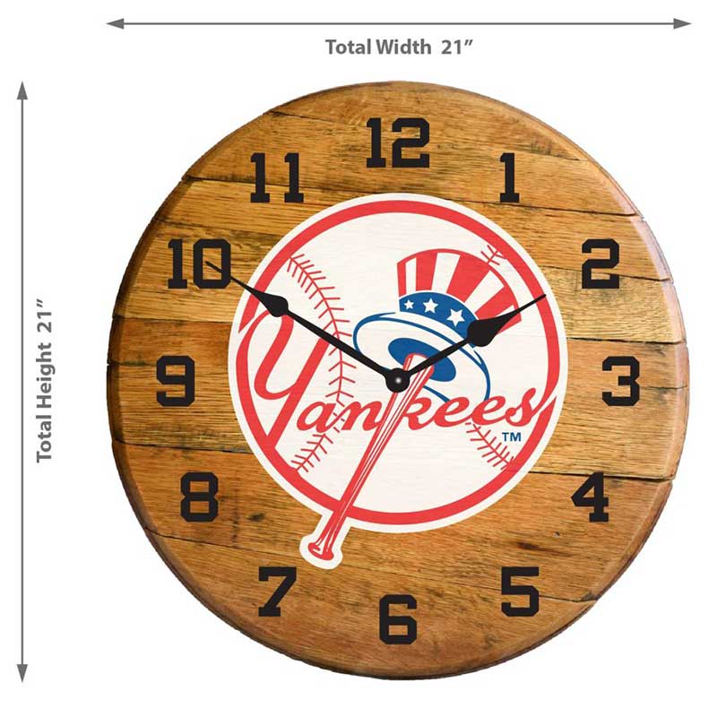 Step up to the plate with the New York Yankees Oak Barrel Clock. Crafted from sturdy oak, this clock features a traditional barrel design with the revered Yankees logo in the center. Its classic look complements any setting, adding a touch of timeless sports elegance. Perfect for any Yankees enthusiast, it serves as a functional piece to celebrate one of baseball’s most storied franchises.