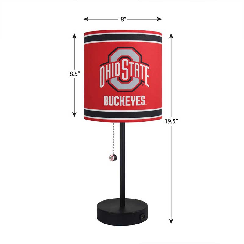 Brighten up your desk, side table, nightstand, you name it, this Ohio State lamp with USB docking station is sure to fit in. Pull chain switch with Ohio State logo offers an easy on and off function. Charge up your phone or tablet close by to where you are reading or working with the built in charging station.