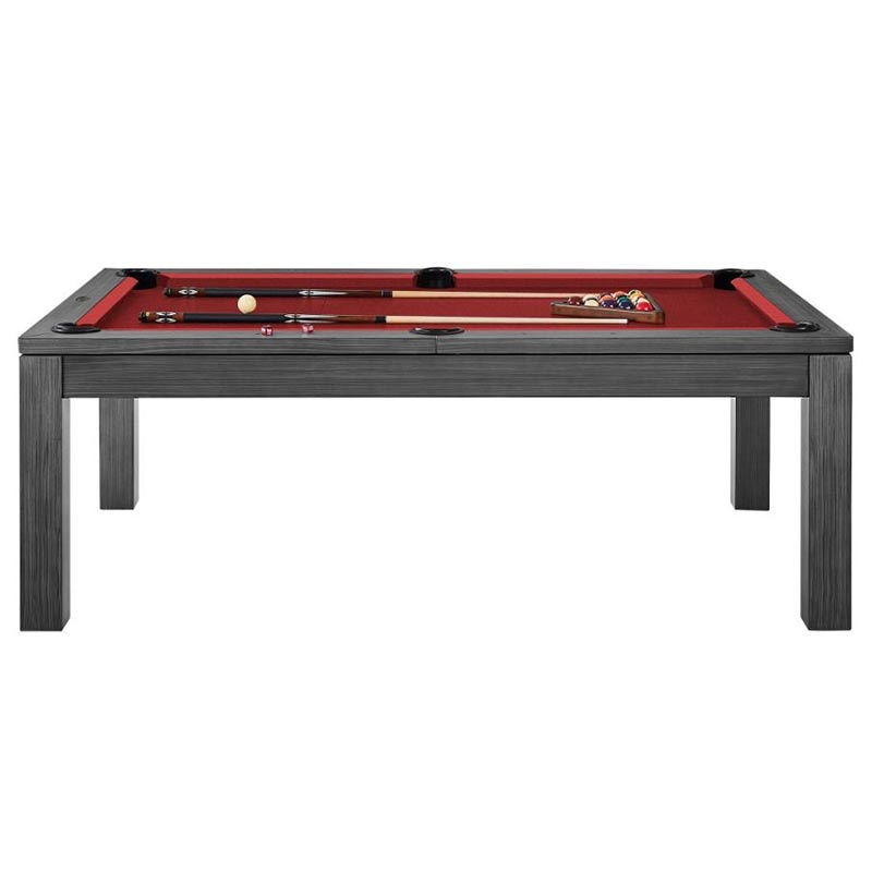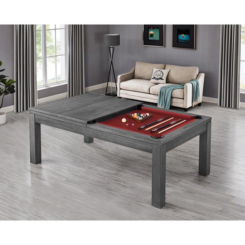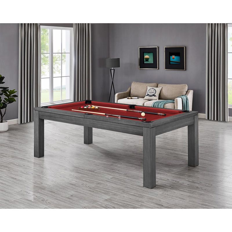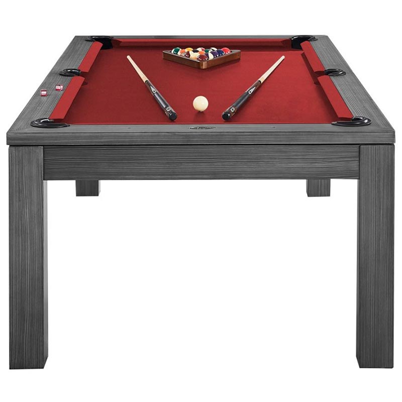 The Penelope II has the same sleek, clean frame of the first-generation table but with a thinner overall body. This table’s post legs, wood frame, and steel support beams provide maximum stability. It also has a slate-leveling system to ensure a consistent playfield. This table also comes with a dining top that can convert the table from a place to play to a place to dine. All Imperial pool tables are skillfully crafted and designed by billiard experts and enthusiasts.