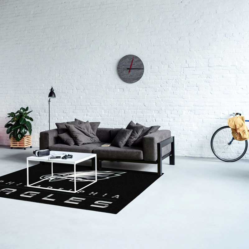 Transform your living space into the ultimate Eagles sanctuary with the Philadelphia Eagles 4′ x 6′ Chrome Rug. Crafted with premium nylon fibers, this officially licensed rug offers both durability and comfort. The dynamic design showcases the iconic Eagles logo against a sleek chrome background, making it a striking focal point in any room. Its non-skid backing ensures that the rug stays securely in place on various floor surfaces, providing safety and stability. Whether you’re hosting game day gatherings or simply displaying your team pride, this rug is the perfect addition to your Eagles fan cave.