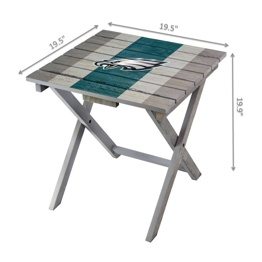 Add style and convenience to your patio or backyard with the Philadelphia Eagles Adirondack Folding Table. Made of solid, high quality pine wood, this table features your favorite team’s logo and folds away for easy storage and transportation. With its classic slatted design, this table looks great on its own or as an accent piece next to your Adirondack chair. This product is officially licensed by the NFL.