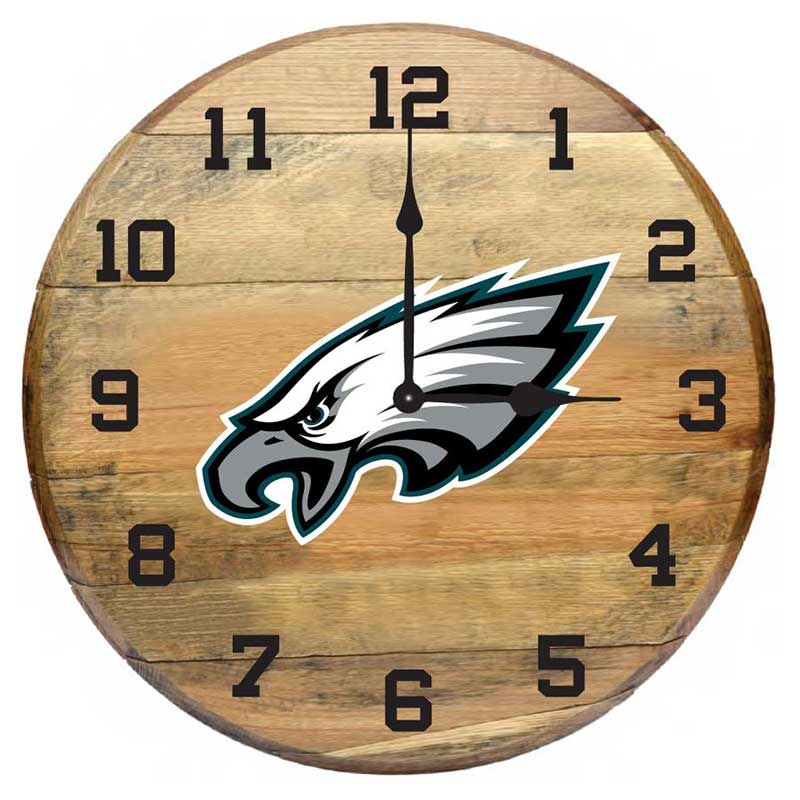 Imperial Philadelphia Eagles Oak Barrel Clock Features: