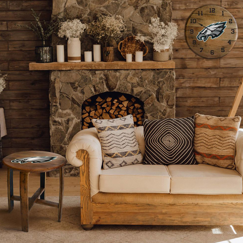 Enhance your Eagles fandom with this Philadelphia Eagles Oak Barrel End Table. This table proudly displays the Eagles logo, making it a centerpiece in any fan’s home. Built from genuine oak barrels, it offers a robust and attractive design. The top is ideal for serving game day treats or as a display area for Eagles gear, and the additional shelf below adds valuable storage space. It’s a functional and expressive addition to any Eagles supporter’s collection.