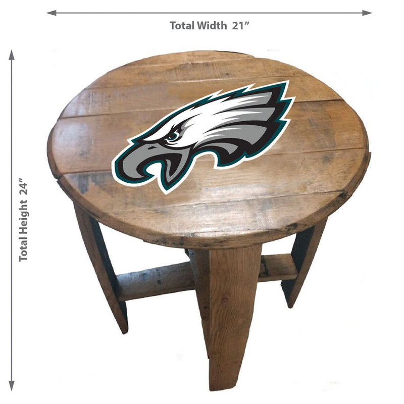 Imperial Philadelphia Eagles Oak Barrel End Table Features: