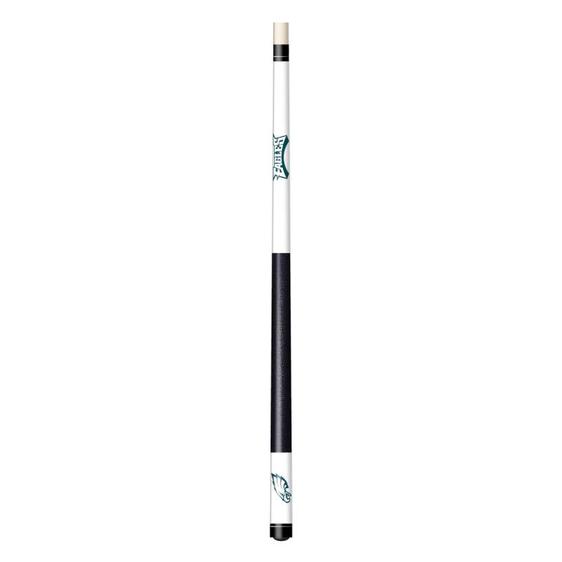 This Philadelphia Eagles Laser Etched Pool Cue features authentic Irish linen wrap and a high quality leather tip. Constructed of solid maple wood, this cue has an implex joint, decorative silver rings, and a laser-etched team logo to show your team spirit while you play