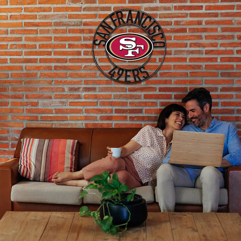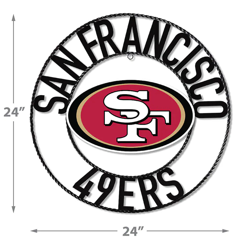 Decorate your home with team pride with this San Francisco 49ers 24” Wrought Iron Wall Art. It is a hand painted piece that shows off your love for the San Francisco 49ers. It is the perfect addition to any home or fan cave.
