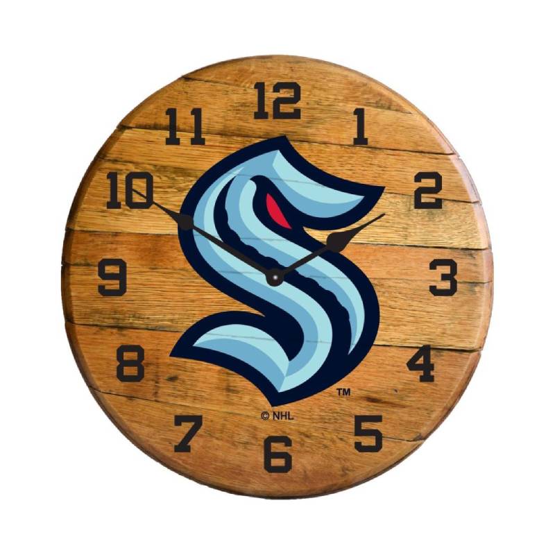 Step up to the game on time with the Imperial Seattle Kraken Oak Barrel Clock. This oak clock, shaped like a traditional barrel, proudly displays the Kraken logo, making it essential for any Kraken fan. The classic design and sturdy construction make it a reliable and stylish addition to any room. It’s perfect for keeping track of the game time or adding a touch of team pride to your décor.
