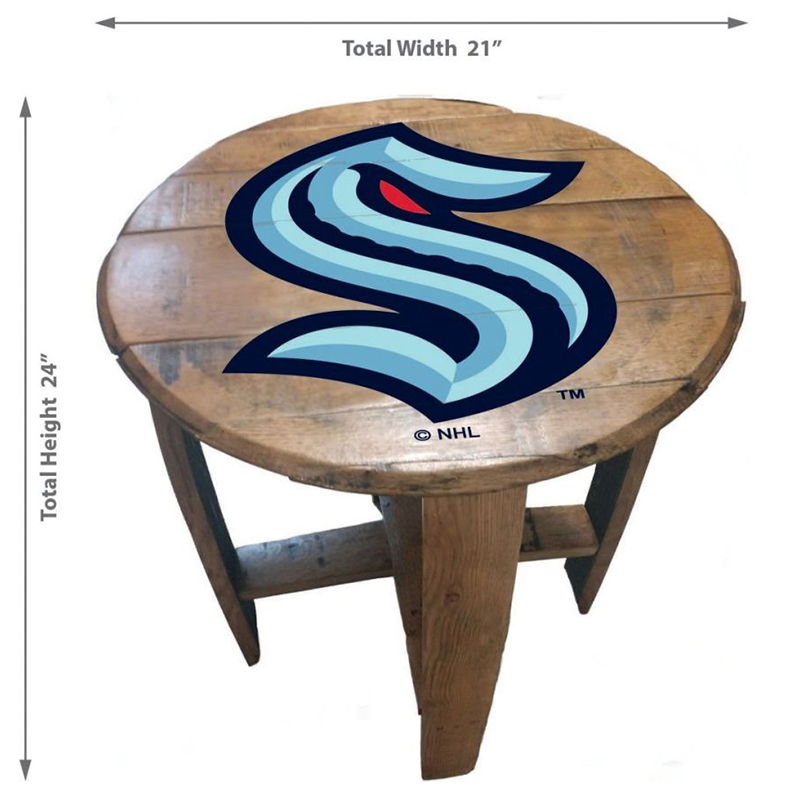 - Spruce up your living room or fan cave with this officially licensed Seattle Kraken custom made Oak Barrel Table from Imperial!