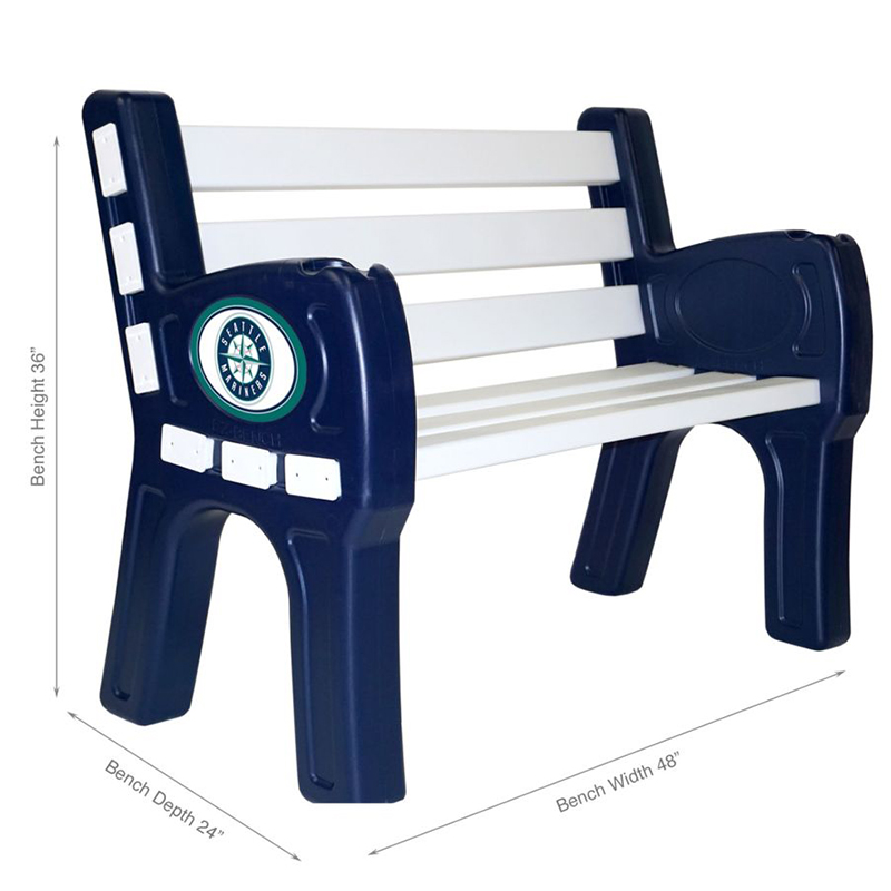 Support your favorite MLB team on your patio or in your yard with the MLB Officially Licensed Park Bench. Backs and seat are constructed of pine and covered with plastic sleeves for extra durability. The bench uses the primary and secondary colors of your favorite team. Made in the USA and ships from Iowa. 600 pound weight limit. Assembled dimensions: 48”L x 24”W x 36”H. 3 days lead time to ship.