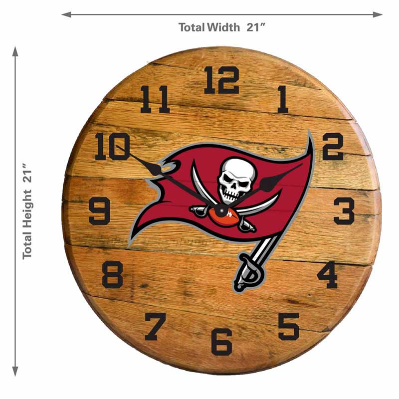 Imperial Tampa Bay Buccaneers Oak Barrel Clock Features: