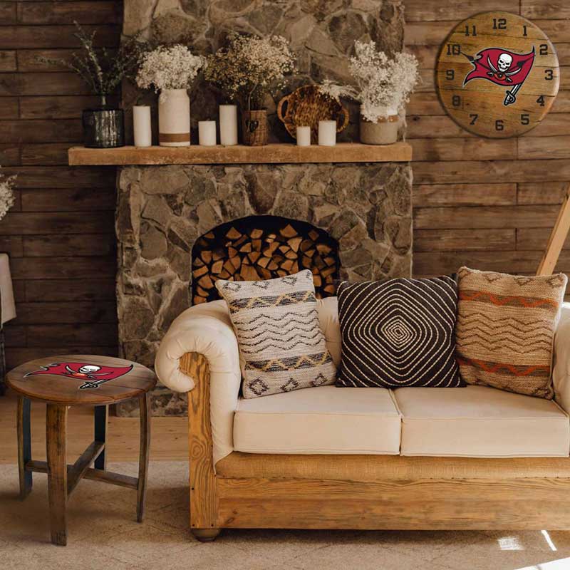 Set sail with the Tampa Bay Buccaneers Oak Barrel End Table, a perfect addition to any Bucs fan’s home. This table features the Buccaneers logo on the top, making it a bold statement piece. Crafted from real oak barrels, it offers a rustic look that complements any décor. The table’s sturdy construction is ideal for holding drinks and snacks, while the lower shelf can be used to display Buccaneers memorabilia or store other items. It’s a functional and stylish way to show your team pride.