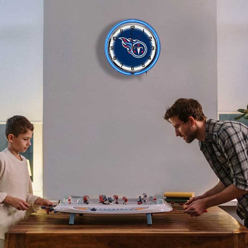 - Neon Lighting: Features vibrant blue and white neon lights surrounding the Titans team logo for a captivating display.