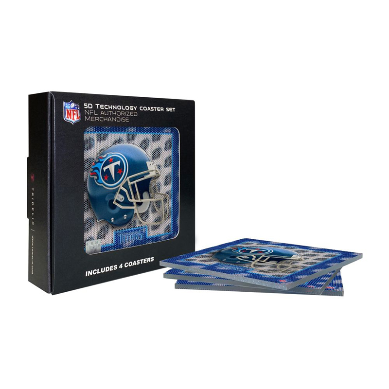 Our NFL Tennessee Titans 5D floating helmet coaster sets are exactly what you need to proudly display your team’s colors on your nightstand, living room coffee table, home office, man cave, or anywhere that needs some spicing up! These Tennessee Titans coasters come 4 to a set and are sure to be the talk of your friends when you gather to watch the game this year! Treat yourself to something special this season! Match this up with the NFL Cel Phone Charger, Desk Topper, and Framed Wall Art to complete the assortment!