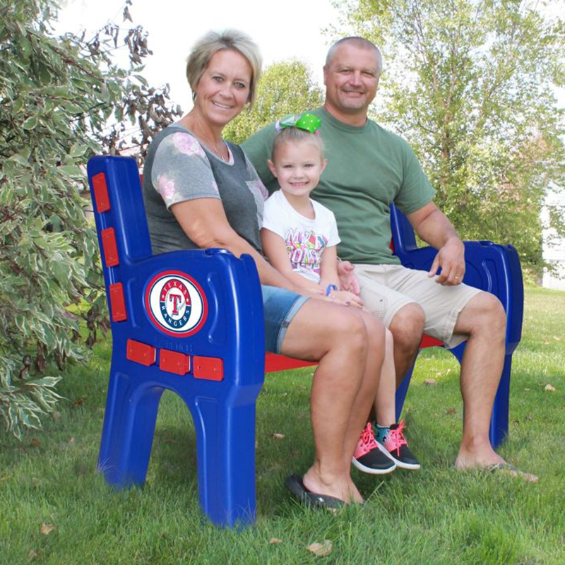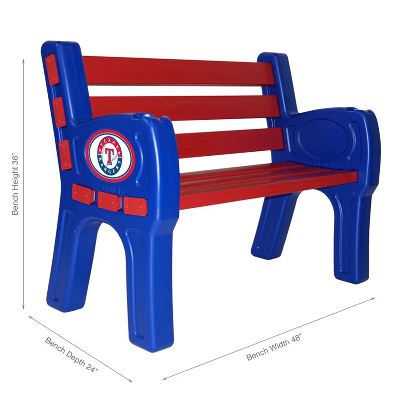 Support your favorite MLB team on your patio or in your yard with the MLB Officially Licensed Park Bench. Backs and seat are constructed of pine and covered with plastic sleeves for extra durability. The bench uses the primary and secondary colors of your favorite team. Made in the USA and ships from Iowa. 600 pound weight limit. Assembled dimensions: 48”L x 24”W x 36”H. 3 days lead time to ship.