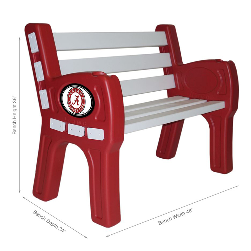 Support your favorite NFL team on your patio or in your yard with the NFL Officially Licensed Park Bench. Backs and seat are constructed of pine and covered with plastic sleeves for extra durability. The bench uses the primary and secondary colors of your favorite team. Made in the USA and ships from Iowa. 600 pound weight limit. Assembled dimensions: 48”L x 24”W x 36”H. 3 days lead time to ship.