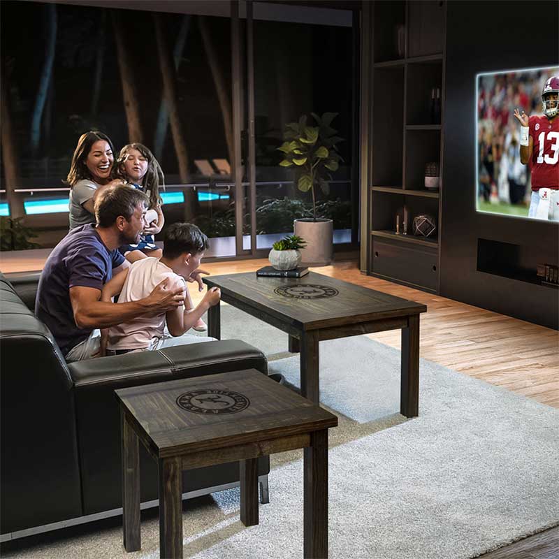 - Wood Coffee Table With Burnt In Team Logo
