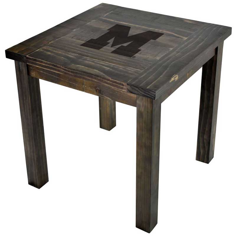 This University of Michigan Reclaimed Side Table from Imperial features your favorite team’s logo to bring team spirit to any living space. Made of solid pine wood. The table looks great holding drinks and snacks in your fan cave or as an accent piece in your living room. Pair this with a team coffee table to complete your room! Officially licensed by the NCAA.