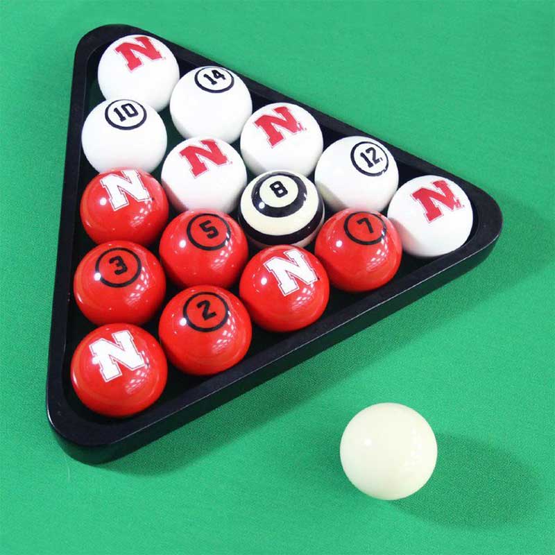 Take Your University of Nebraska Billiard Ball Set To The Pool Table And Enjoy A Quick Game Of 8 Ball Or 9 Ball. These Balls Have Large Team Logos And Numbers And Really Pop! Balls Are Regulation Size And Weight And Made Of A Polyester Resin That Resists Chipping And Cracking. Time To Get You A Set!