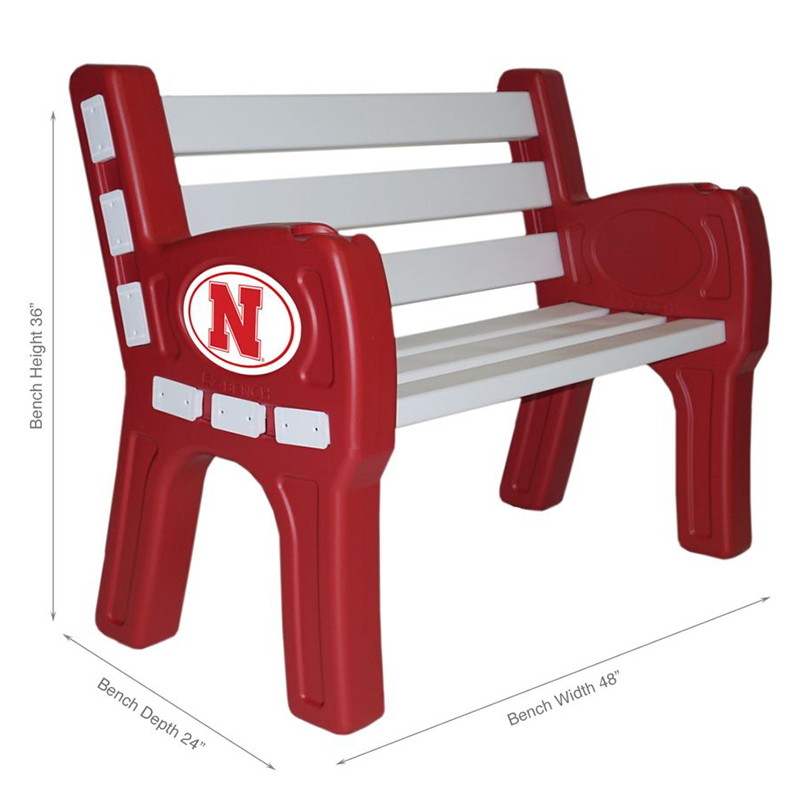 Support your favorite team on your patio or in your yard with this Officially Licensed Park Bench. Backs and seat are constructed of pine and covered with plastic sleeves for extra durability. The bench uses the primary and secondary colors of your favorite team. Made in the USA and ships from Iowa. 600 pound weight limit. Assembled dimensions: 48”L x 24”W x 36”H. Allow 3 days to ship.