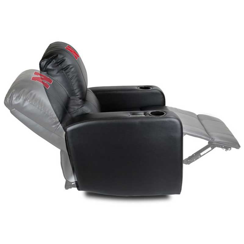 Watch your favorite team or play your favorite games while enjoying this comfortable power theater recliner. Officially Licensed Collegiate, the chair is made with premium faux leather and has pocket spring coil seating for extra comfort. Team logo is embroidered on the headrest. The chair is decked out with a smooth power mechanism, a USB charging station, and cup holders in both arms. Ships LTL. 3 units per pallet. Chair dimensions: 33.5” x 38” x 40”.
