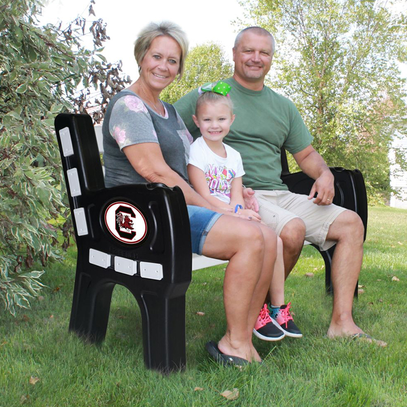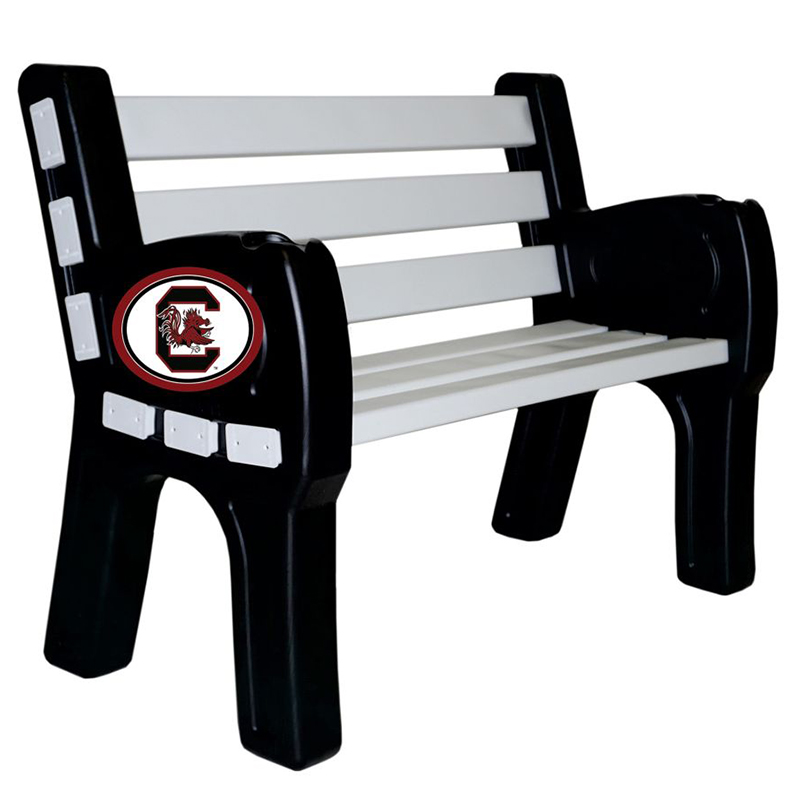 Support your favorite team on your patio or in your yard with this Officially Licensed Park Bench. Backs and seat are constructed of pine and covered with plastic sleeves for extra durability. The bench uses the primary and secondary colors of your favorite team. Made in the USA and ships from Iowa. 600 pound weight limit. Assembled dimensions: 48”L x 24”W x 36”H. Allow 3 days to ship.