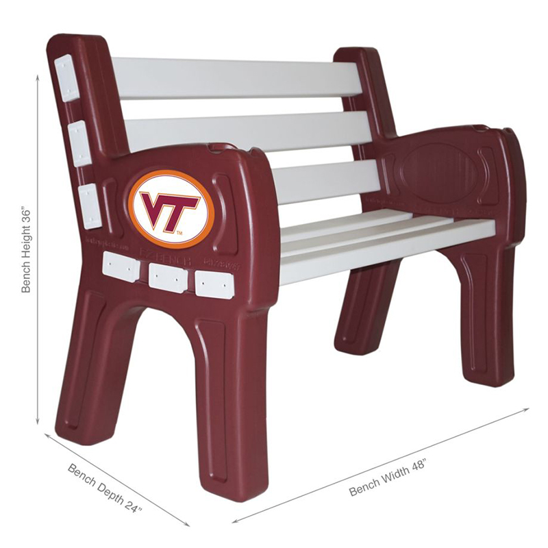 Support your favorite team on your patio or in your yard with this Officially Licensed Park Bench. Backs and seat are constructed of pine and covered with plastic sleeves for extra durability. The bench uses the primary and secondary colors of your favorite team. Made in the USA and ships from Iowa. 600 pound weight limit. Assembled dimensions: 48”L x 24”W x 36”H. Allow 3 days to ship.