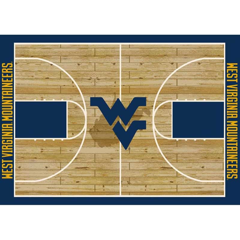 - Iconic Design: Vibrant team colors and West Virginia University logo at center court.