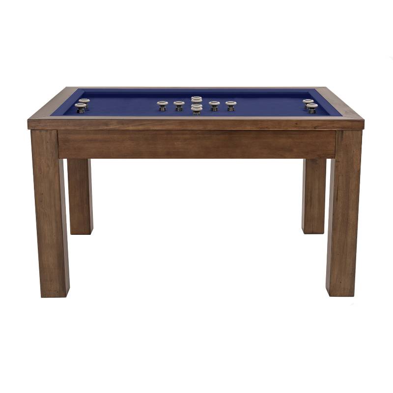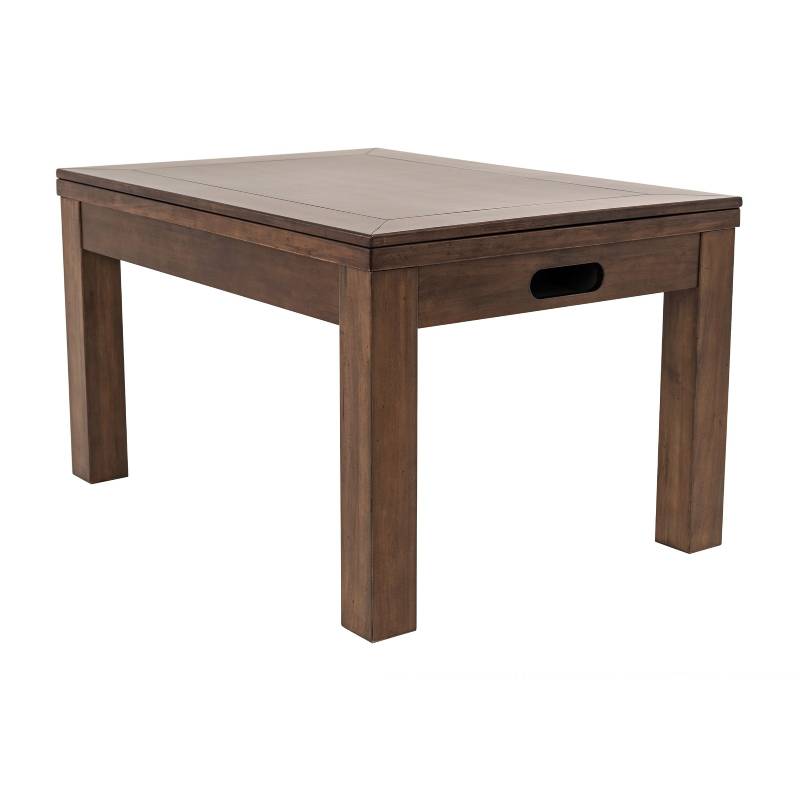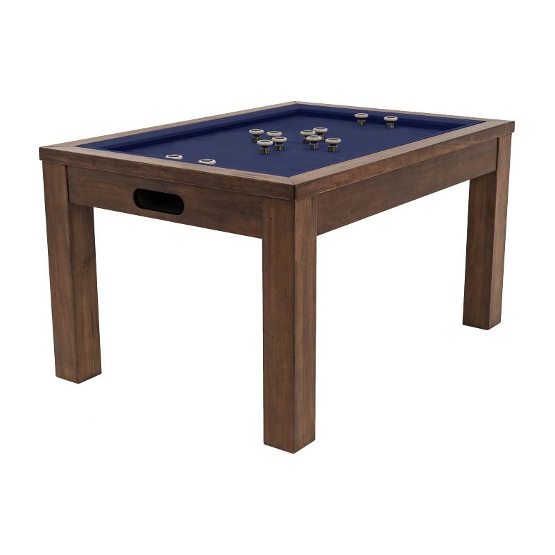 The Imperial Penelope bumper pool table is a convertible 3 in 1 table. It easily changes from a dining table to a card table with a flip of the conversion top. Removing the top reveals the bumper pool option.