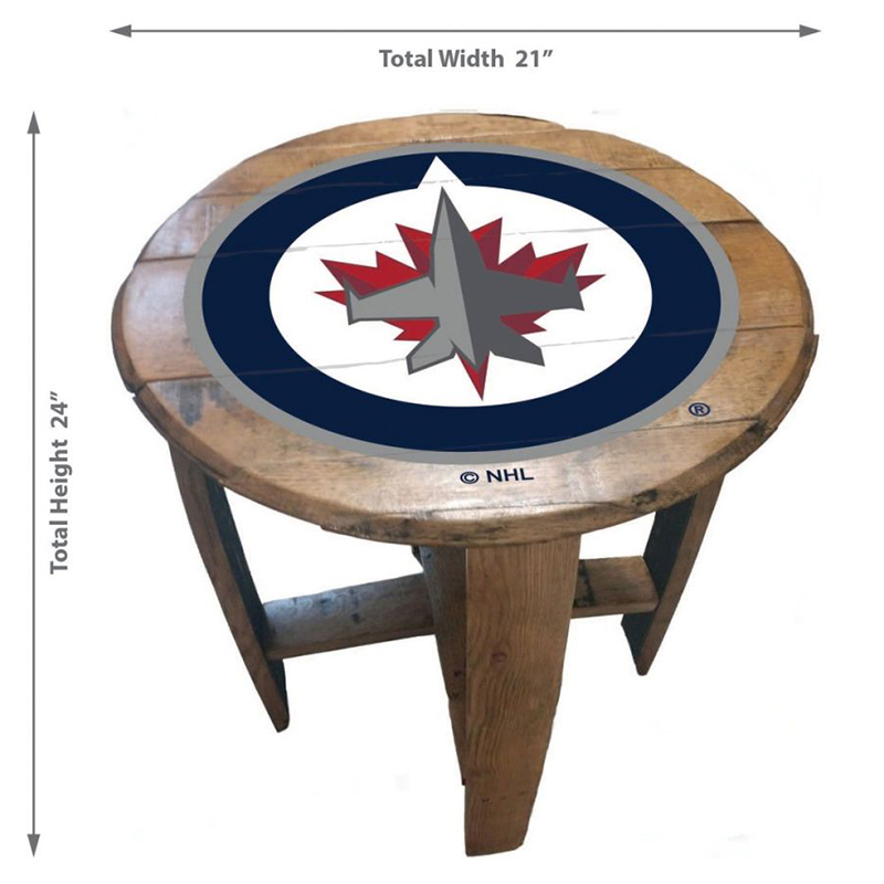 - Spruce up your living room or fan cave with this officially licensed Winnipeg Jets custom made Oak Barrel Table from Imperial!