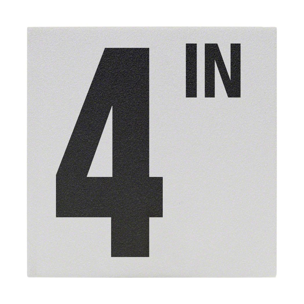 Crafted from high-quality, smooth ceramic with a non-skid finish, the Inlays CC620504 tile is built to last, capable of withstanding the demanding conditions of aquatic environments. Ceramic is chosen for its superior durability and resistance to pool chemicals, water, and UV exposure, ensuring the “4 In.” marking remains clear and legible over time. The depth indication utilizes a top print design method, guaranteeing maximum durability and clarity under various pool conditions.