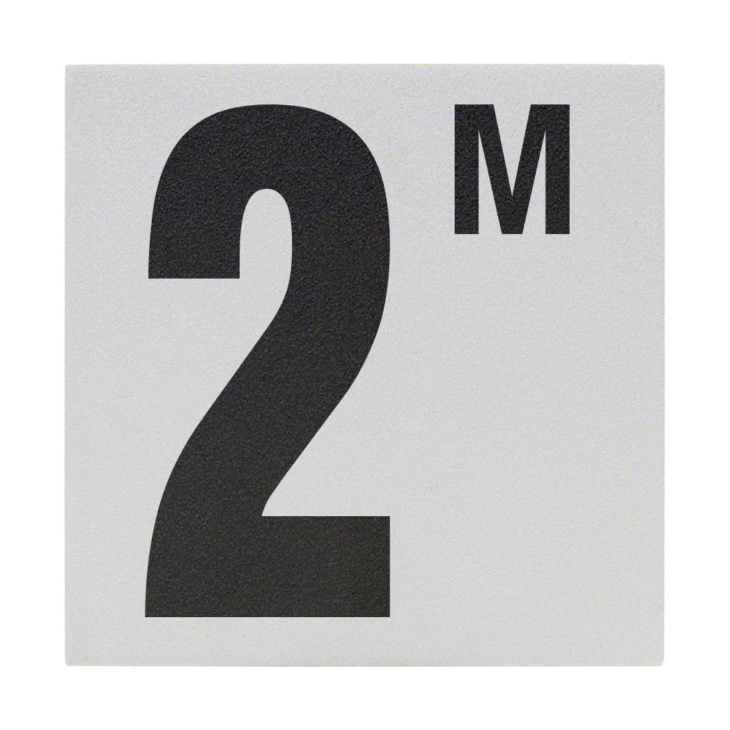Constructed from high-quality, smooth ceramic with a non-skid finish, the Inlays CC623020 tile is designed for longevity, ready to face the demanding conditions typical of aquatic environments. The ceramic material is selected for its exceptional durability and resistance to the effects of pool chemicals, water, and UV radiation, ensuring the “2 M” marking remains vibrant and legible over time. The depth indication employs a top print design method, offering maximum durability and clarity under various pool conditions.