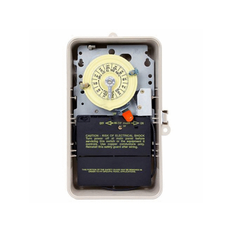 These heavy-duty Mechanical Time Switches are designed for commercial, industrial and residential applications and have the highest motor load ratings in the industry. They provide up to 12 ON/OFF operations each day with a minimum ON/OFF time of 1 hour. This model is designed to turn OFF a gas fired swimming pool heater approximately 20 minutes before the filter pump shuts down. This eliminates the problem of pounding and knocking due to overheated water, reduces scale and lime deposits and extends the service life of the heater.
