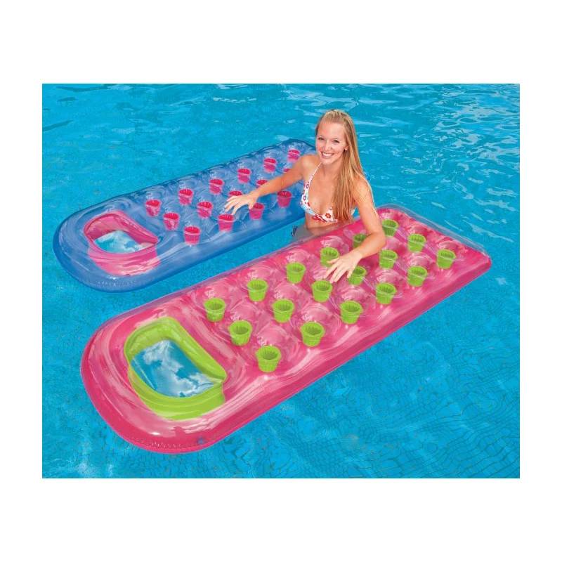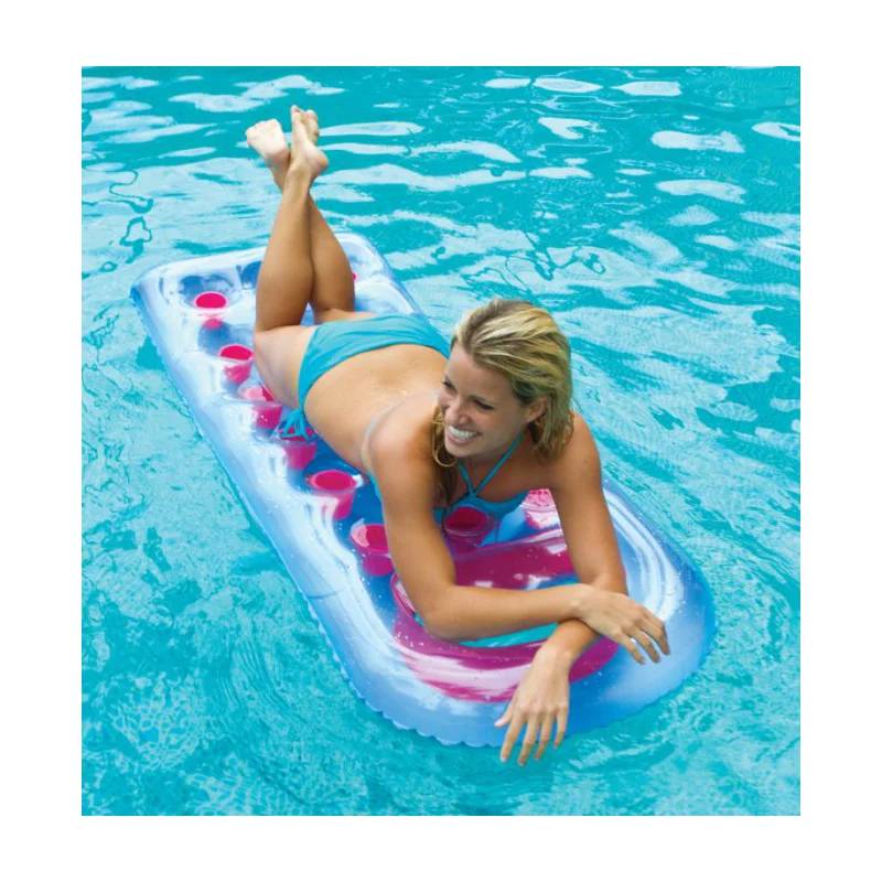 The Soak up the rays while relaxing on the Intex Pool Lounger. Featuring a comfortable built in pillow and durable vinyl construction, the pockets even double as cup holders. Its coil beam style air mattress is supportive and comfortable, and its 11 gauge vinyl top and bottom make it extra durable. This floating lounge is the right choice for a warm day out on the water! Save time and money with this convenient package offer! Color may vary between the variations pictured.