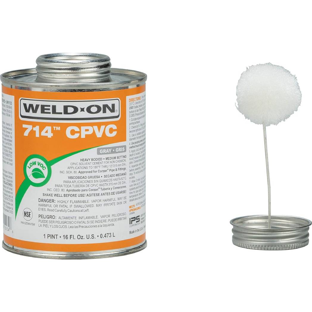 The IPS 1 Pint Weld-On 714 CPVC Heavy Body Cement is designed for use in plumbing applications where a stronger, more substantial cement is necessary. This pint-sized container is perfect for smaller jobs or as a handy addition to any plumber’s toolkit. The heavy-body formula offers superior gap-filling capabilities, making it ideal for fittings with larger diameters or irregular surfaces. It provides a durable bond that resists the pressures of water delivery systems, ensuring long-term reliability. The cement is easy to use, with a fast set time that helps speed up the completion of projects.