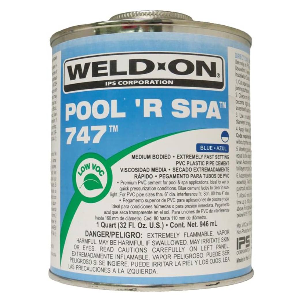 IPS 10852 1 Quart Weld-On 747 Pool ‘R Spa Blue (Fades to Clear) PVC Cement