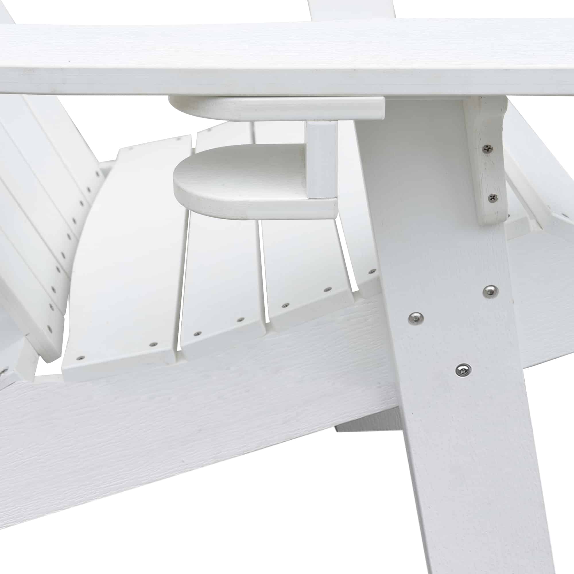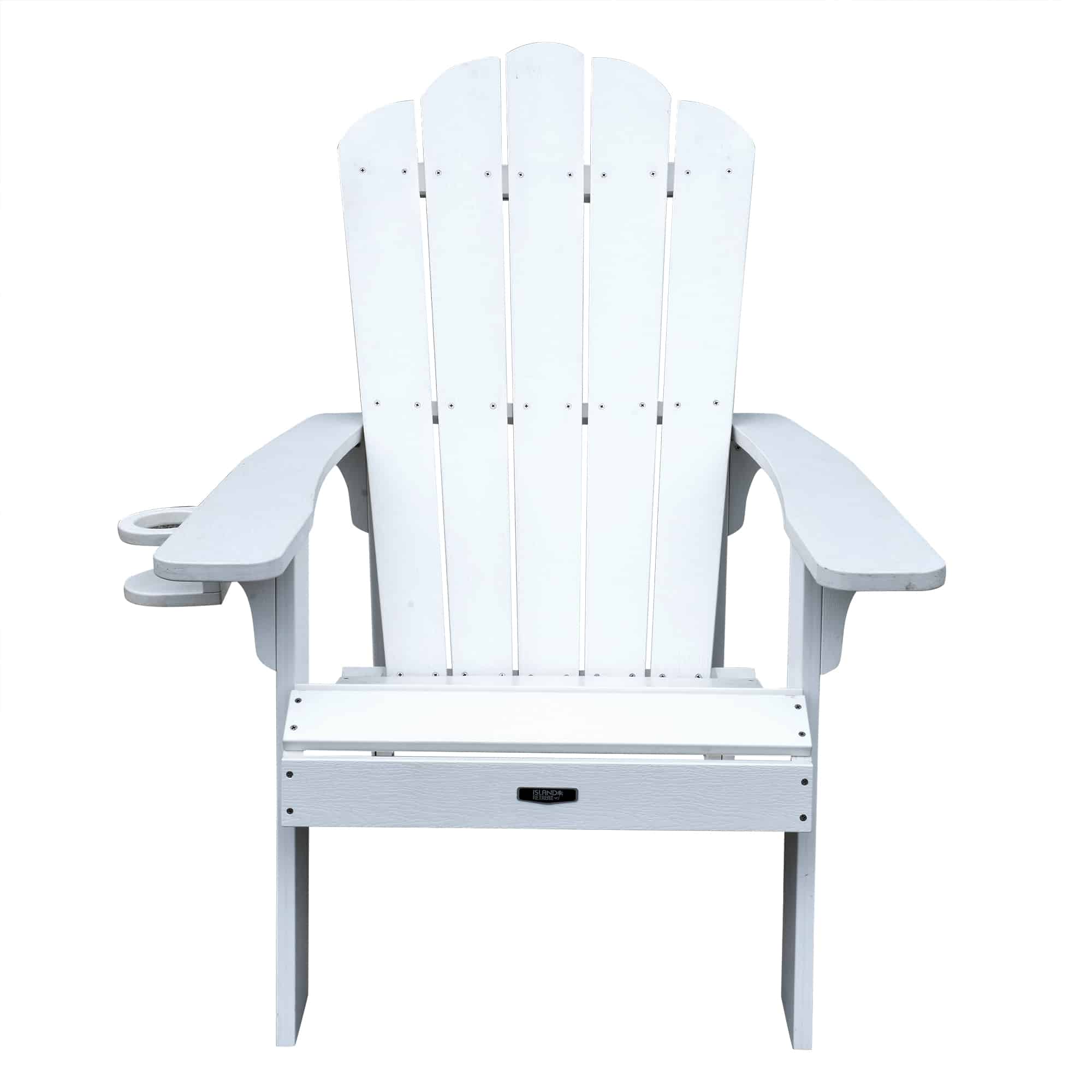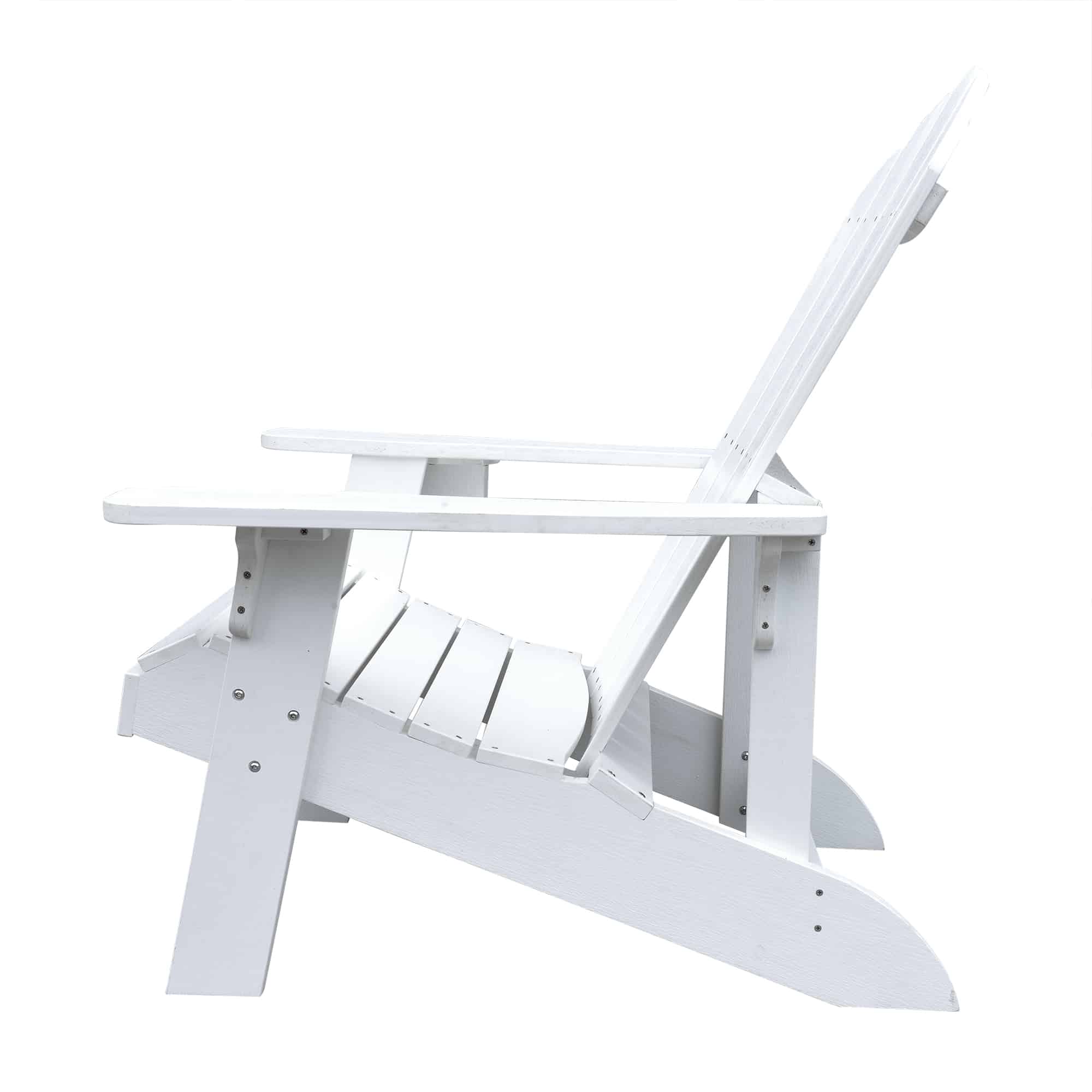 The attractive Island Retreat Adirondack Chair features traditional styling and built-in comfort. The wide armrests, curved seat, and ergonomically designed high back makes this chair and extremely pleasant place to lounge. It is crafted from polyresin lumber that is engineered to withstand nature’s elements. Available in a fade-resistant, bold White color that gives the appearance of painted wood, this Adirondack requires no painting, staining, waterproofing or similar upkeep. Easy to clean with soap and water. Kick back and relax in the comfort and styling you’ve come to expect with the Island Retreat line of products!