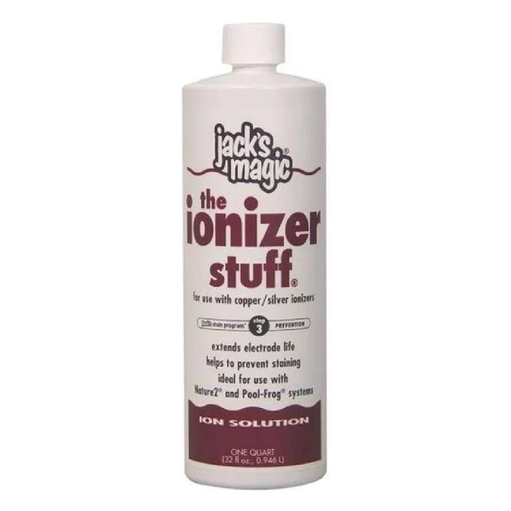 The Jack’s Magic JMION032EACH 1 Quart The Ionizer Stuff offers a single, convenient bottle of specialized solution for maintaining your pool’s ionizer system. This product effectively balances ions, ensuring the efficient operation of your ionizer and clear, inviting pool water. Easy to apply, it fits seamlessly into your regular pool maintenance routine. Ideal for both initial trials and regular use, this product ensures your ionizer system operates at peak performance. Maintain optimal ion balance and water clarity with Jack’s Magic The Ionizer Stuff.