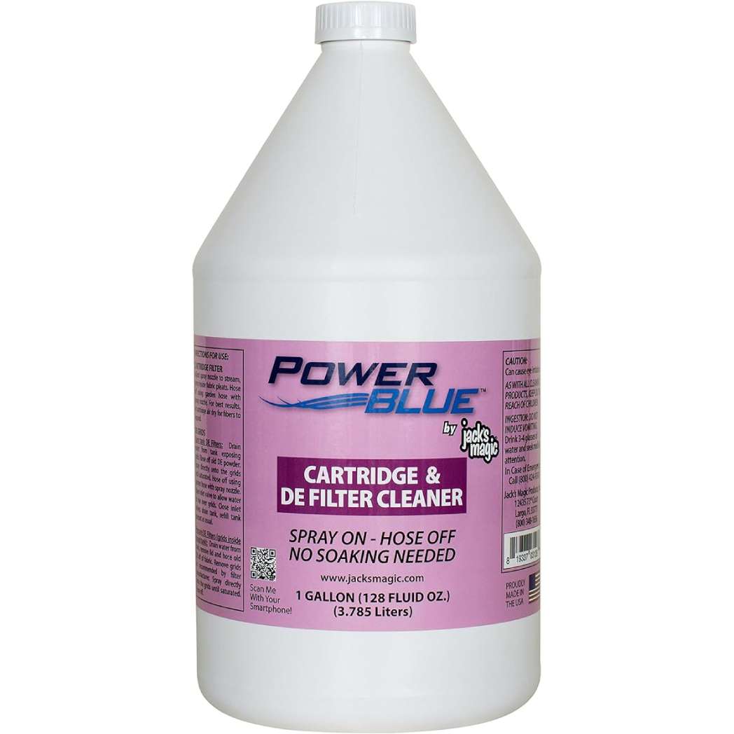 This 5 Gallon Power Blue Cartridge & DE Filter Cleaner is a bulk solution for maintaining large pool filtration systems. This powerful cleaner is designed to penetrate and remove oils, dirt, and debris from DE and cartridge filters, restoring their efficiency. Ideal for commercial or large residential pools, this 5-gallon container provides a long-lasting supply. Easy to use, simply apply the cleaner to your filters and rinse thoroughly. Ensure your filtration system operates at its best with Jack’s Magic Power Blue Cartridge & DE Filter Cleaner.