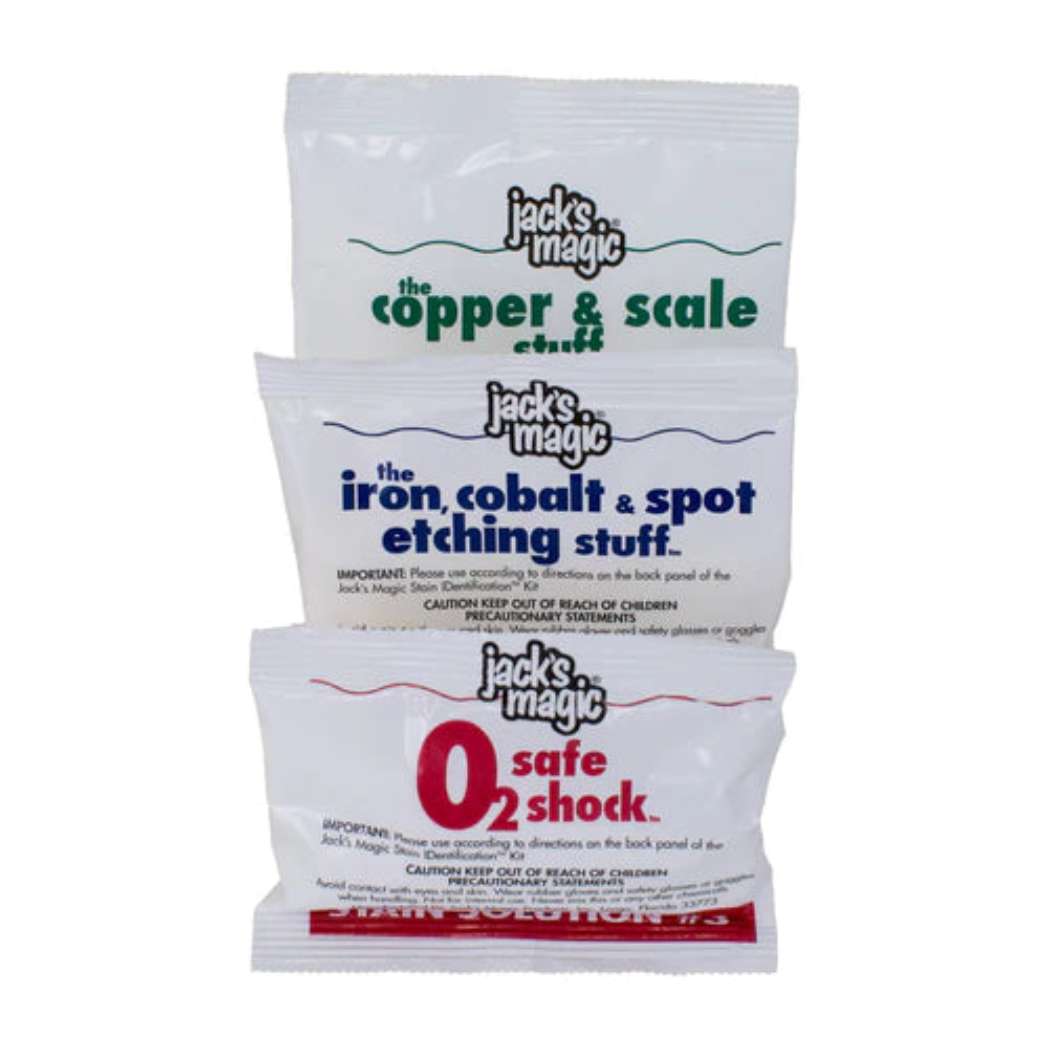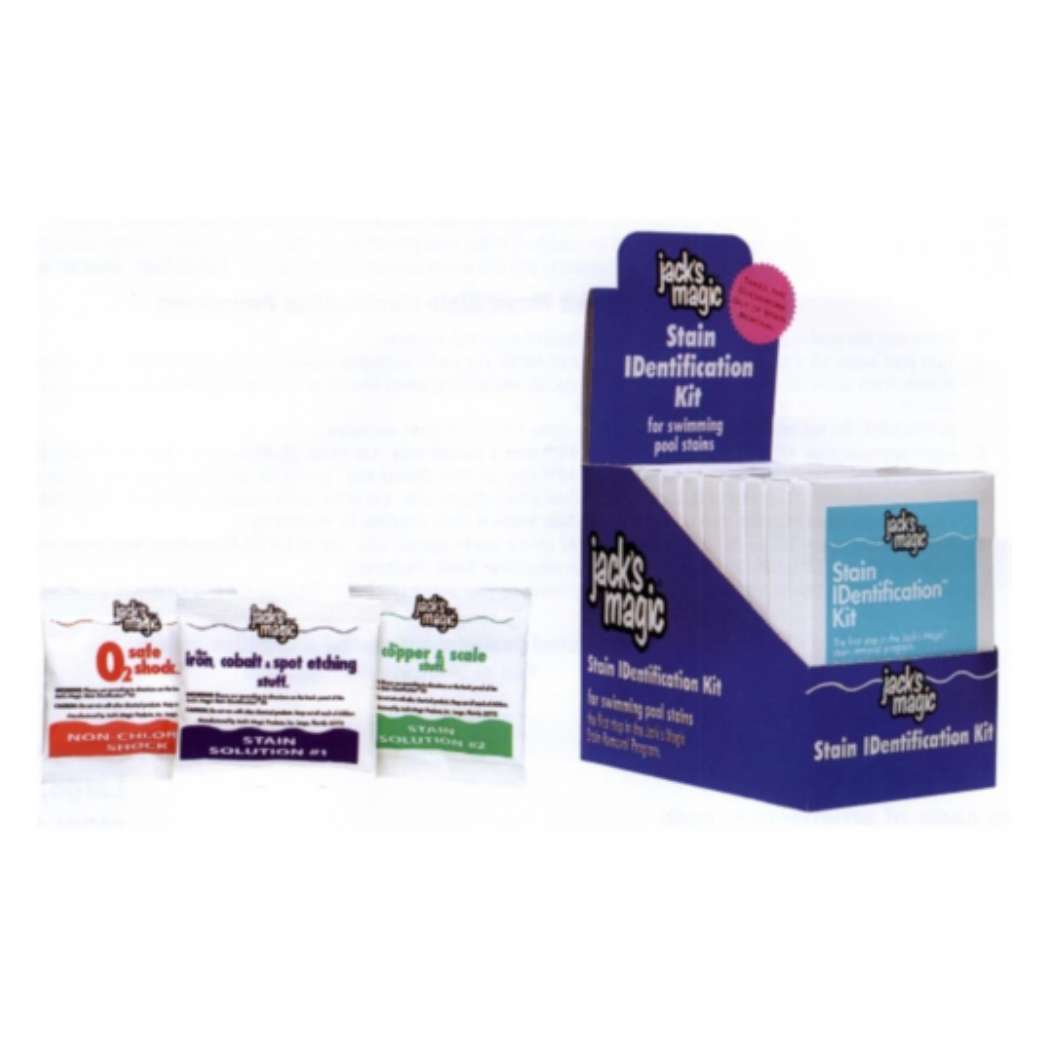 The 12 Count Stain Identification Kits provide a reliable way to diagnose and treat pool stains. This set of 12 kits is perfect for pool service companies or large residential pools needing regular maintenance. Each kit is equipped with everything necessary to identify the type of stain, making it easy to select the appropriate treatment. User-friendly and effective, these kits help maintain the pristine appearance of your pool. Trust Jack’s Magic Stain Identification Kits for accurate stain solutions.
