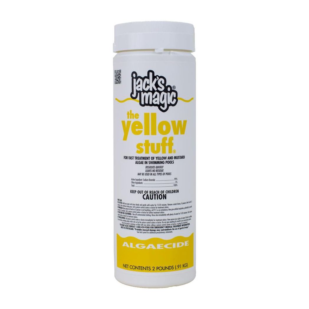 Jack’s Magic JMYELLOW2 2 LB The Yellow Stuff Algaecide is a powerful solution for controlling and eliminating yellow and mustard algae in pools. This highly effective algaecide quickly destroys algae, helping to keep your pool water clear and safe. Each case contains 12 two-pound containers, ensuring you have a substantial supply for regular treatment. Easy to use, simply add the recommended amount to your pool water for immediate results. Maintain a clean and algae-free pool with Jack’s Magic The Yellow Stuff Algaecide.