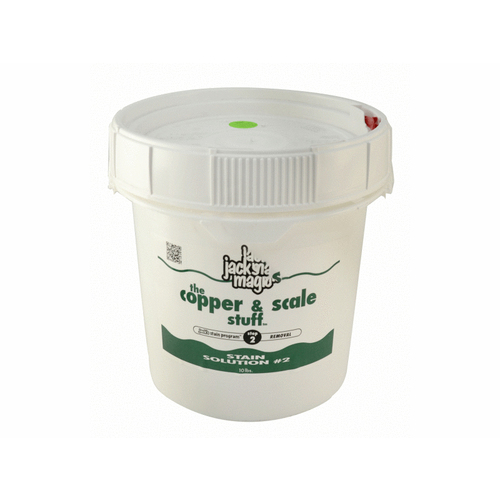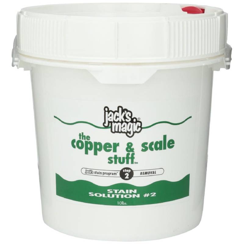 The Jacks Magic stain cleaner is designed to remove copper stains and scale safely and effectively from all types of pool surfaces without draining the pool. The copper and scale stuff is more effective than acid washing the pool and will save both time and money. Use 10-pounds per 10,000 gallons. Must bypass heater when using this solution.