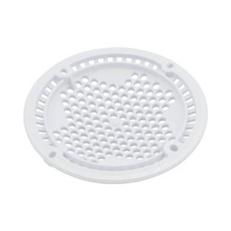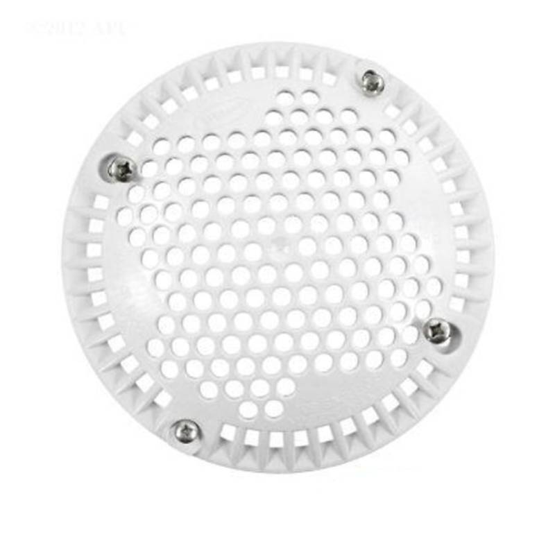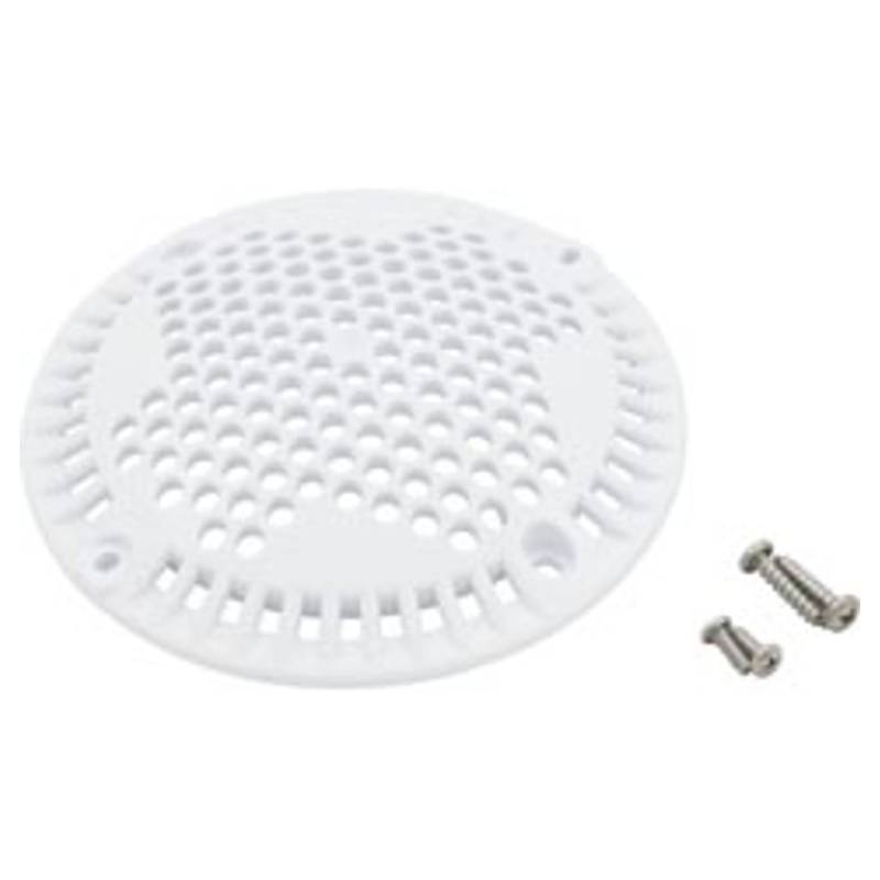 - A white plastic anti-vortex main drain cover with 2 sets of mounting screws